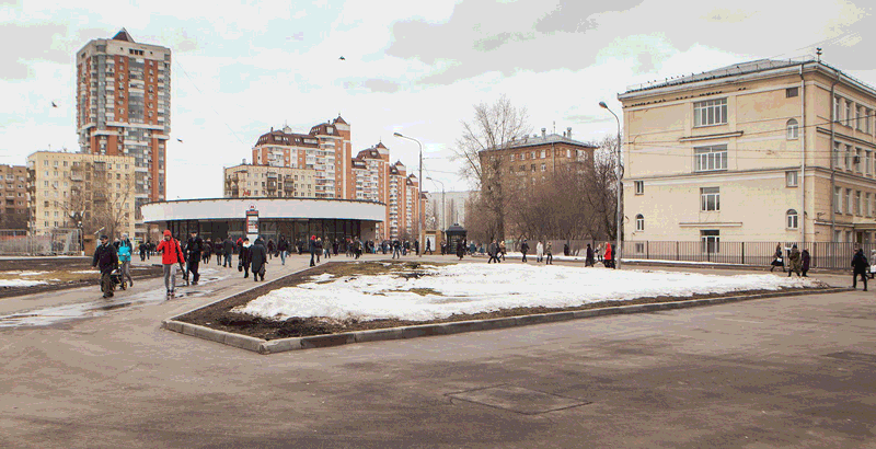 Площадь у метро «Улица 1905 года» еще три года назад была вся усыпана шаурмой, киосками с косметикой и пивными ларьками, где можно было купить алкоголь после 23.00, а соответственно, и алкоголиками, бездомными людьми и собаками, мусором и грязью. Она тогда сильно отличалась от ближайшей к ней «Краснопресненской», возле которой в то время тоже стоял «Шеш-беш», но там было по крайней мере относительно чисто. Год назад шаурмичных уже не было, но все еще было грязно. Теперь на «Улице 1905 года» сквер с газоном, пока, правда, без обещанных деревьев.