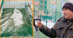 Холстом служит футбольное поле во дворе жилого комплекса «Седьмое небо». Он использует разметку на поле как координаты для рисунков.