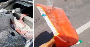 Сам же красный баллон был найден мужчиной в нескольких метрах от автомобиля. Точнее то, что осталось от баллона — у него не хватало примерно 30% корпуса, а уцелевшая часть оказалась почти идеально сплющена.