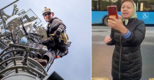 Любопытно, что один из монтажников и сам заснял сцену с другой стороны. И, конечно же, выложил видео в тикток (в шутку подписавшись «слугой сатаны» в описании профиля). Правда, сейчас это видео удалено, но в том же телеграм-канале его бережно сохранили.