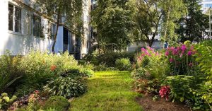 Дом расположен на Судостроительной улице недалеко от местного трамвайного кольца. Анне Карповой 47 лет, и она давно увлекается садоводством. В Москве таких примеров много — там, где не предусмотрено концепции комплексного озеленения, особенно не в новостройках, а возле старых домов, обязательно находится один, а то и несколько энтузиастов, которые берут все в свои руки. Большую часть сада Анна вырастила в период, когда началась пандемия.