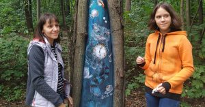 В фейсбук-группе «Фили Давыдково. Соседи» опубликовали фотографию художниц, которые расписывают деревья в парке, возле их произведения. На оголенном стволе дерева они изобразили Чеширского Кота из бертоновской экранизации «Алисы в Стране чудес». Автор поста поблагодарила девушек, добавив, что «страна должна знать своих героев».