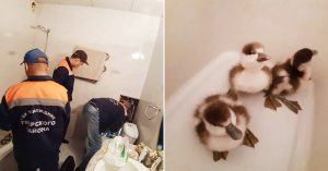 Жители Миус спасли этих утят из вентиляционной шахты и вернули родителям в пруд