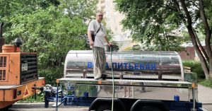 Москвичи ждут воды со вчерашнего дня, а управляющая компания все время переносит сроки ее подачи: сначала аварию обещали устранить до 10 утра, потом до 4 дня, до 6 вечера и т. д. Службы лишь пригнали в дому водовозку с питьевой водой, к которой выстраивается очередь с ведрами.