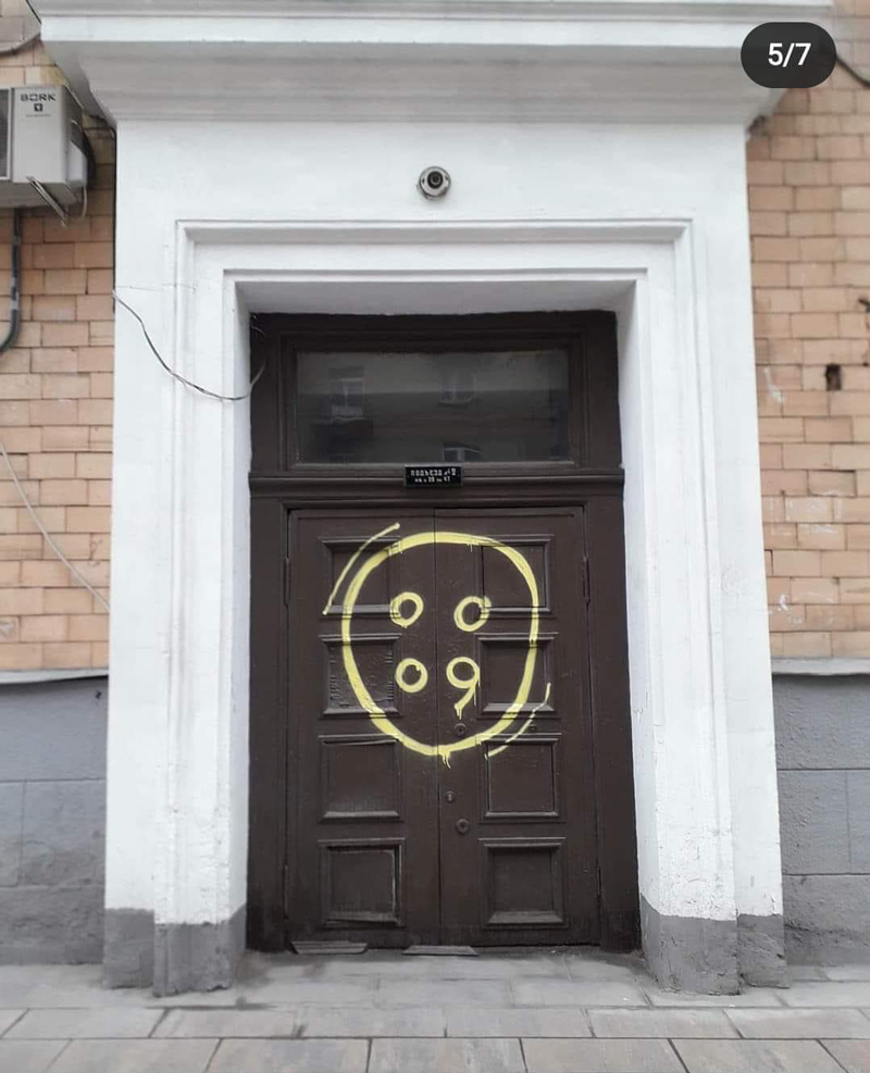 Сегодня на стене одного из домов на Новопесчаной улице появился небольшой плакат, стилизованный под настенный рисунок  — на нем изображена толпа с агрессивными лицами, а подпись под рисунком гласила: «Жители Сокола охотятся на уличного художника». Оказывается, автор изобразил реальную ситуацию — местное сообщество действительно разыскивает художника за вандализм. Пару дней назад он нарисовал пуговицы на входных дверях нескольких местных сталинок; так символически автор решил отобразить режим самоизоляции, действующий в городе. Фотографии застегнутых дверей попали в местное фейсбук-сообщество Airport/Sokol Da Neighborhood, участники которого потребовали найти и наказать вандала. Однако им это не удалось, а художник ответил им сегодняшней карикатурой.