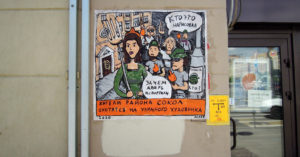 К тому же это был абсолютно анонимный проект — кто им занимался, узнать так и не удалось. Рисунки на Соколе приписываются стрит-художнику Антону Мейку — одному из основателей знаменитого сообщества «Партизанинг», делавшего интересные городские проекты с помощью инструментария арт-активизма, в частности стрит-арта. Кстати, сегодняшняя его карикатура вызвала у местных жителей в основном положительные отзывы. Что уже хорошо — потому что для города, как мы помним еще по прошлогодней летней войне с настенной живописью, граффити до сих пор вне закона.