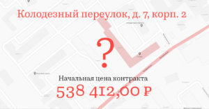 Она обнаружила на портале госзакупок опубликованный «Жилищником» района Сокольники тендер на ремонт подъездов в несуществующем доме. Вернее так: в тендере указан адрес Колодезный переулок, 7, корп. 2. Однако такого адреса не существует — дом с такими координатами есть только на Колодезной улице.