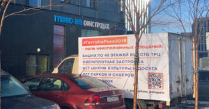 Жители Тушино разместили рядом с офисом продаж «газель» с критикой застройки