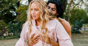 В «Без обид» актриса вернулась на экраны с материалом, за который ее полюбили зрители десять лет назад. Ее героиня Мэдди, еле сводящая концы с концами барменша из прибрежного Монтока, чем-то напоминает принесшую ей «Оскар» Тиффани из фильма «Мой парень — псих», только она еще вульгарнее, громче и нелепее. Дженнифер идет это амплуа — так она напоминает, что ей нравится быть обычной женщиной за 30 cо своими слабостями и недостатками, а не идеальным созданием с рекламных щитов Dior. И, главное, кому как не Лоуренс попытаться вернуть в голливудское кино, захваченное детскими развлечениями от Marvel и Pixar и серьезными драмами с прицелом на «Оскар», секс, пусть и в его комической подаче, в духе «Американского пирога».