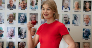 Режиссер Джей Блейксон, известный по «Исчезновению Элис Крид» и «Пятой волне», идеально выдерживает интонацию, благодаря которой мы, зрители, почти сочувствуем циничной злодейке. Все оттого, что фильм решен как черная комедия, и, конечно, он бы получился гораздо хуже, если бы преступницу играла не Розамунд Пайк. Холодная жесткая блондинка, которая за секунду может принять вид нежной английской розы, Марла в исполнении Пайк — прямая наследница хитрых подруг гангстеров из голливудских криминальных драм 1930-х, блондинок Хичкока и Кэтрин Трамелл из «Основного инстинкта». Это машина без эмоций и угрызений совести — не зря она, не теряя ни одной драгоценной секунды, профессионально выбирается из тонущей в реке машины так, будто занимается этим каждую неделю.