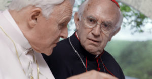 «Знаете, как аргентинец кончает с собой? Забирается на вершину своего эго и прыгает вниз», — весело сообщает кардинал Хорхе Марио Бергольо (Джонатан Прайс) папе римскому Бенедикту XVI (Энтони Хопкинс). Аргентинец — это, соответственно, сам Бергольо, который прибыл в Ватикан, чтобы просить у папы отставки.