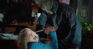 — хорроры были основой для киноманского наваждения давно, что было обыграно Кевином Уильямсоном в постмодернистских «Криках» в 1990-х. В самом начале нового «Хэллоуина» ребенок, оставшийся с сиделкой в канун Дня всех святых, говорит ему: «Майкл Майерс не убивает детей, только сиделок», и авторы фильма заботятся о том, чтобы опровергнуть это клише;