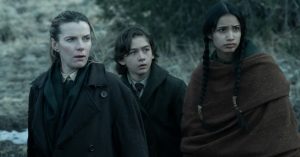 Берг рассказывает, что толчком для разработки «Первозданной Америки» стало изучение резни в Маунти-Медоуз — того самого налета из первой серии. В результате нападения так называемой мормонской милиции тогда погибли 120 человек, включая женщин и детей. Над сценарием Берг работал вместе с Марком Л. Смитом, который написал «Выжившего» для Алехандро Гонсалеса Иньярриту. И родства с фильмом, принесшим «Оскар» Леонардо ДиКаприо, «Первозданная Америка» ничуть не стесняется. Без эпизода с медведем обошлось, но в целом все выполнено с тем же размахом и свирепостью. Берг, впрочем, идет дальше и вводит в сюжет множество ярких персонажей. Все они нужны для того, чтобы аранжировать центральное путешествие Сары и Девона — для шести серий одного его было бы маловато.