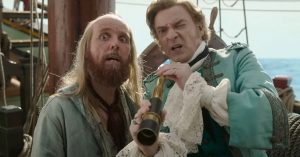 Собственно, именно эта подробность и оказывается ключевым достоинством сериала. «Наш флаг» не пытается конкурировать с «Пиратами Карибского моря», это не сказка, а абсурдистская фантазия. В чем ее идея, еще предстоит разобраться. Здесь и превращение мягкотелого мечтателя в тирана, и внезапная дружба с Черной Бородой, и просто комедия про банду живописных фриков на фоне красивых пейзажей. В комедийном плане сериал справляется неплохо: в первых же эпизодах предъявлены и плотоядная капитанша (Лесли Джонс), и, например, бар, в котором флибустьеры разливают по стаканам настоящую кровь. Амбивалентность юмора опять же очень в духе Вайтити, проекты которого всегда находили, чем удивить.