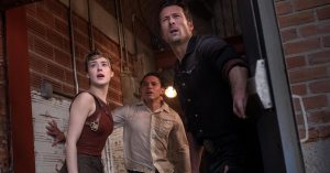 — в «Смерчах» нет как такового обязательного для таких фильмов злодея, мешающего героям работать. Эту функцию здесь поначалу выполняет наглый самовлюбленный влогер Тайлер Оуэнс (Глен Пауэлл), который любит пускать фейерверки прямо в центре торнадо, закрепив машину в земле чем-то вроде сухопутного якоря-зонда, чтобы потом выложить видео на ютуб. Где-то в середине фильма торнадо-ковбой оказывается душкой и приносит вечно грустной Кейт пиццу, потому что она так расстроена, что забывает поесть. Дело идет к роману, и как тут не вспомнить первый «Смерч» 1996 года, в котором бывшие Хелен Хант и Билл Пэкстон воссоединялись на фоне бущующего урагана. Явление природы там преподносилось как стимул укрепления чувств, и в этом смысле «Смерч» напоминал старые голливудские романтические комедии, где совместная работа или природная стихия снова объединяла влюбленных. В «Смерчах» происходит примерно то же самое, только герои, наоборот, лучше узнают друг друга в общей борьбе: Тайлер кажется все меньшим мудаком, Кейт — все меньшей занудой;