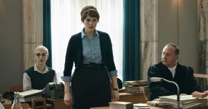 Аннет Хесс — одна из самых успешных женщин на немецком телевизионном рынке, именно она создала хитовые сериалы «Ку’дамм», «Вайсензее. Берлинская история» и недавний «Мы дети станции Зоо». На сей раз в фокусе ее внимания оказался знаменитый франкфуртский процесс над 22 нацистскими преступниками, растянувшийся до 1965 года. Его важнейшим итогом стали не только приговоры (смертная казнь в Германии уже была запрещена, что многих не устроило), сколько придание огласке фактов недавнего прошлого, на которые немцы долгие годы закрывали глаза. Речь о том, что уже после окончания Второй мировой Адольф Гитлер, согласно социологии, оставался популярным лидером, никакой однозначной оценки деятельности НСДАП внутри страны не существовало.