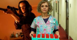 Эта замечательная история моментально всплывает в памяти с первыми кадрами сериала «Шершни» — и дело здесь не только в том, что Кусама значится продюсером и постановщицей пилота шоу. Речь здесь вновь идет о людоедстве и девушках на грани нервного срыва. На сей раз в центре внимания девичья футбольная команда, которая в 1996 году отправляется на соревнования в Онтарио. По пути самолет падает, героини оказываются отрезаны от цивилизации, а в лесах, где произошло крушение, на деревьях вырезаны странные знаки. В то время, как потерпевшие размышляют над стратегией выживания и учатся рубить топором покалеченные ноги, зритель уже знает, что во всяком случае четверо из них вернулись домой. Параллельно с 1996-м действие разворачивается в наши дни. Заучка Шона (Софи Нелисс) превратилась в домохозяйку (Мелани Лински) и мать довольно несносной дочери. Панкушка-оторва Натали (Софи Тэтчер) — в прошедшую реабилитацию, но не справившуюся с демонами женщину (Джульетт Льюис), у которой дома на всякий случай хранится ружье. Чернокожая и целеустремленная Таисса (Жасмин Савой Браун) теперь строит политическую карьеру (и имеет внешность Тони Сайпресс). Ну и наконец психопатичная девочка в очках Мисти (Сэмми Ханратти) обернулась внешне приветливой нимфоманкой с явными маниакальными замашками (Кристина Риччи). О прошлом выживших заставляют вспомнить пришедшие каждой открытки с теми самыми символами с деревьев.