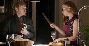По форме «Дом с прислугой» — мрачный готический роман, в котором для пущего колорита есть даже рыжий британец Руперт Гринт (Рон Уизли из «Гарри Поттера»). Почти все действие разворачивается в пределах роскошного дома Тернеров. Здесь много крупных планов, в первой (шьямалановской) серии есть еще и пижонские развороты в пределах одного кадра, которые лишь усиливают клаустрофобичность происходящего. На уровне завязки из всего этого мог бы получиться пристойный камерный триллер с потенциалом долгой счастливой жизни на кабельном телевидении.