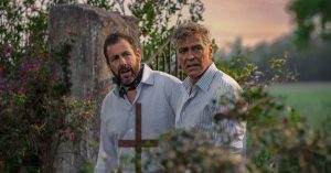 — конечно, как всегда у Баумбаха, Клуни окружает первоклассная свита — Адам Сэндлер, давно доказавший, что может играть драматические роли, в роли Рона, менеджера Джея, а Лора Дерн — его агента Лиз. Их стычки по поводу того, сколько в их работе с клиентом личного отношения, а сколько профессионального, отвлекают от минорного настроения самого Келли, пребывающего в предпенсионном кризисе;
