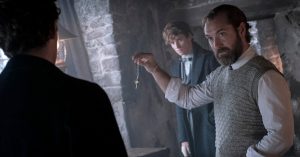 — манера игры Эдди Редмейна за три фильма перестала быть трогательной и начинает раздражать. Застенчивость Ньюта Скамандера, который вечно смущенно прячет взгляд, не дает ему стать тем героем, за которым интересно следить. За три фильма Скамандер совершенно не прогрессирует, его отношения с Тиной (Кэтрин Уотерстон появляется здесь меньше, чем на минуту) так и не определены, а влюбленность в него помощницы Банти (Виктория Йетс) проговорена, но никак не развита. Ранимость Гарри Поттера объяснялась его возрастом. У Скамандера такого оправдания нет, поэтому бремя геройства естественно переходит к Дамблдору, который, впрочем, тоже не получает от сценаристов полновесной истории;
