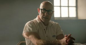 Помощь неожиданно пришла от пассажирки (Долли Уэллс), вскинувшей телефон и заявившей, что ведет прямой эфир в фейсбуке (соцсети Meta признаны экстремистскими на территории РФ). Остальные пассажиры последовали примеру сознательной гражданки, Бет была спасена — и тут же предложила спасительнице (ее звали Дженис Файф) сделать интервью. Обменявшись телефонами, женщины отправились по своим делам. Бет полетела в США брать интервью у сидящего в камере смертников за убийство жены профессора криминалистики Джефферсона Гриффа (Стэнли Туччи), который коротает время, распутывая сложные дела с одобрения начальника тюрьмы (Дилан Бейкер).