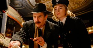 — пьеса «Мышеловка» Агаты Кристи заслужила стать главной героиней фильма. Она побила все рекорды по репертуарной продолжительности — спектакль впервые поставили в 1952-м, и он идет до сих пор. В «Смотрите, как они бегут» труппа первой постановки отмечает сотое представление пьесы, и нас знакомят с героями на сцене и за ней. Через несколько минут самая большая знаменитость фильма — Эдриан Броуди в роли голливудского режиссера Лео Коперника — будет убит, и любящий выпить инспектор Стоппард (Сэм Рокуэлл) с неопытным констеблем Сталкер (Сирша Ронан) начнут по очереди отсеивать подозреваемых, у каждого из которых, конечно, есть мотив. Герои «Смотрите, как они бегут» пытаются как-то разнообразить типичный кристиевский прием об инспекторе, который к финалу собирает подозреваемых и свидетелей, чтобы сообщить имя убийцы — Коперник как режиссер-новатор хочет сделать кровавый экшн-финал с перестрелкой. Продюсер отметает эту идею, которая кажется ему кощунственной, но жизнь покажет, что охотно готова не только имитировать искусство, но и радикально его подправить;