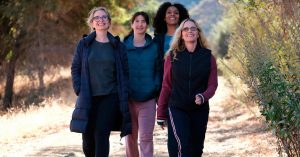 Этот опыт ощущается в «Женщинах за 40» уже на уровне завязки. Сама Жюли играет Жюстин — хозяйку лос-анджелесского ресторана имени себя. Жюстин живет с мужем-французом, который в теории имеет профессию архитектора, а на практике лишь изматывает супругу. Секса давно нет, кот гадит по углам, любимый сын увлечен Джоном Ленноном. Единственная отдушина Жюстин — это три подруги. Энн (Элизабет Шу) — веселая блондинка с кризисом среднего возраста, которая вроде бы собирается развестись с мужем десятью годами моложе. Ясмин (Сара Джонс) — чернокожая эмансипированная женщина на грани нервного срыва, превращающая семейную жизнь в подобие бочки с хорошо просушенным порохом. Плюс ее психического состояния — спонтанный и яростный секс с мужем, минус — иногда от нее прилетает даже соседям и их собаке. Наконец, Элл (Алексия Ландо) — отчаянная безработная мать-одиночка с двумя детьми. Элл так жаль себя, что она все время попадает в нелепые ситуации: то устроится ростовой куклой динозавра в музей палеонтологии, а то и приятель (Джованни Рибизи) из сострадания выпишет чек после неловкого минета. Подругам, как следует из названия, за 40, но они ведут себя так, будто вечеринка по случаю миллениума была максимум позавчера.