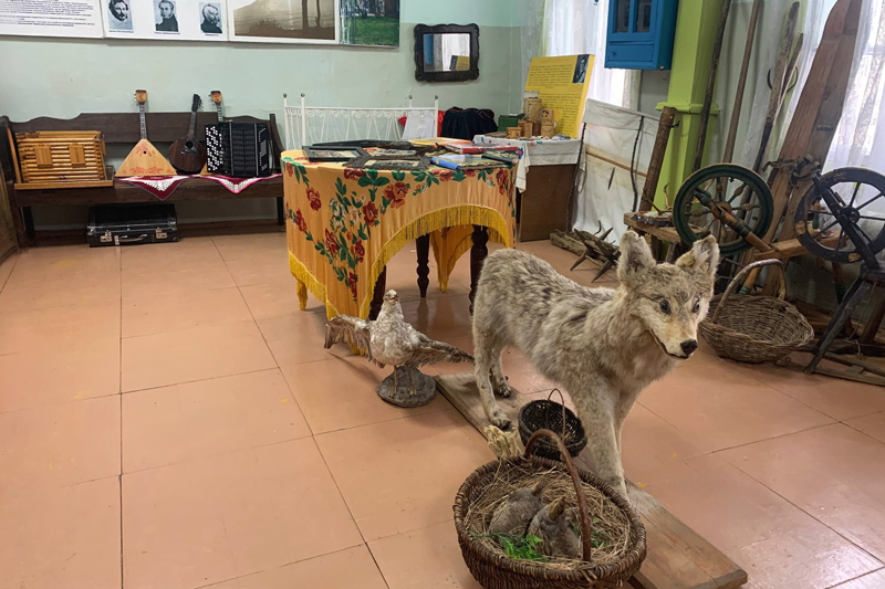 Подпитанная шиповником, зашла в местный музей (комната в деревянной избе) в сельском клубе. Музей мне понравился — незатейливая экспозиция оформлена с любовью и нежностью. Там и грозное чучело волка, и настоящий бубен шамана, и огромные ржавые ножницы XVIII века, и деревянная сумка для охотничьих трофеев. На стенах фотографии отцов-основателей курорта и портреты декабристов. Отбывавшие каторгу декабристы писали царю прошение, и он разрешал им полечиться от артроза на минеральных источниках Горячинска. И советские труженики со всей страны массово отдыхали в санатории и веселились в клубе — пели, плясали и ставили спектакли. Все это зафиксировано на черно-белых фотографиях, которые можно разглядывать часами.