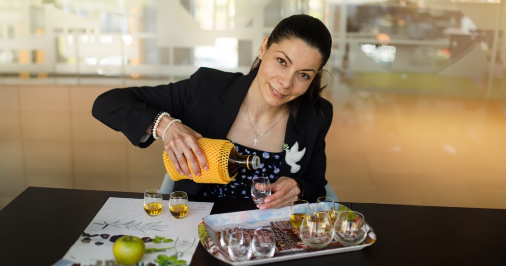Хорошее оливковое масло должно быть с пикантной горчинкой, как рукола, баклажан, грейпфрут или горький шоколад. Это полезная горечь, которая способствует пищеварению. Есть определенные сорта оливок, в которых заложен высокий уровень полифенолов — это коронейки, цунати, коратина и корникабра. А вот цвет масла может быть любым — от соломенно-золотистого до насыщенного зеленого. Цвет не значит ровным счетом ничего, на дегустациях мы оцениваем масло в цветных — синих или бордовых — бокалах.