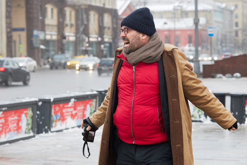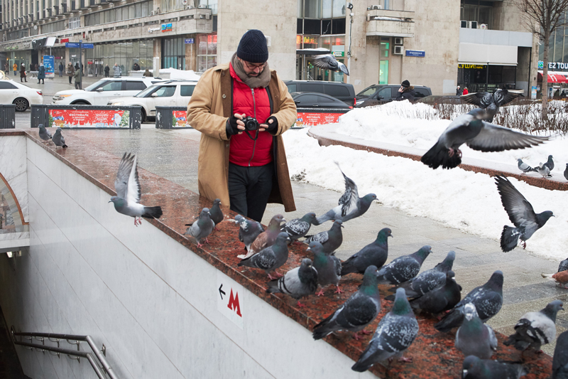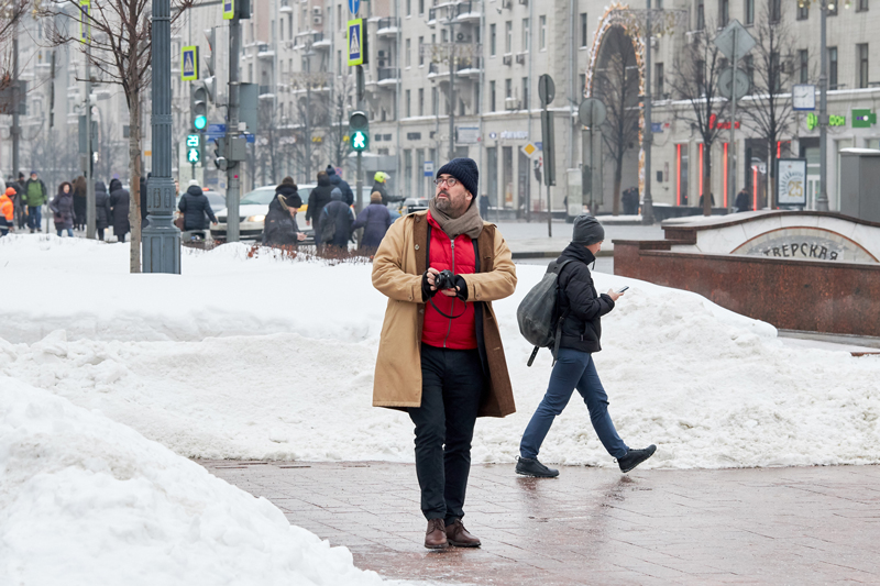 Утро второго дня в Москве Томас решает посвятить разбору материала, снятого накануне, поэтому встречаемся мы только в обед. Все планы, намеченные заранее, уже на месте перекроились: вновь оказавшись в российской столице, звезда мировой фотографии твердо решает пройтись по местам фильма «Я иду, шагаю по Москве» и воссоздать его сцены в сегодняшнем дне. Поэтому первый рабочий час мы проводим на Пушкинской площади. Здесь, повернувшись спиной к гению русской литературы, Томас ловит в кадр случайных прохожих.