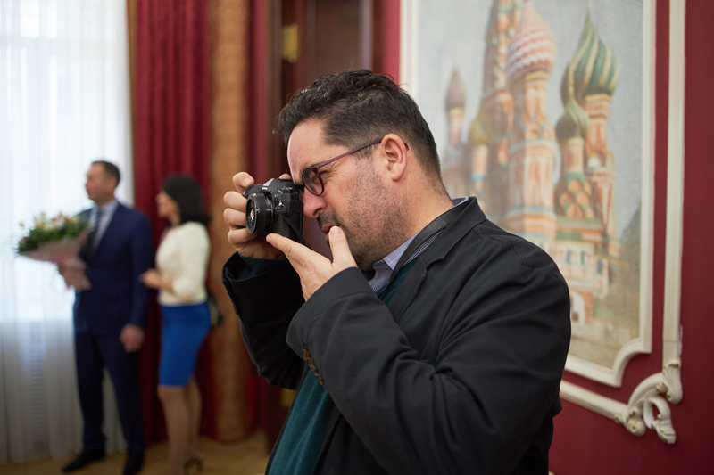 «Политики и разные высокопоставленные лица обижаются, — рассказывает он между делом. — Не воспринимают компактную технику всерьез, а я снимаю только на такое».