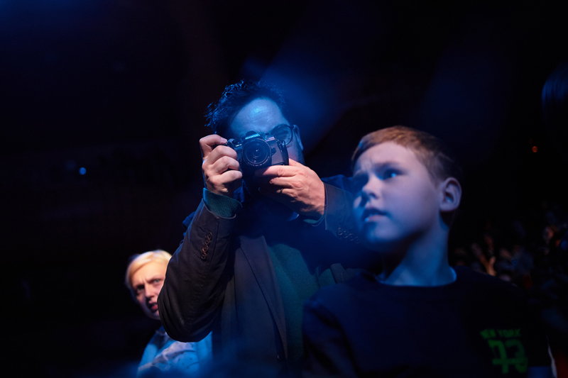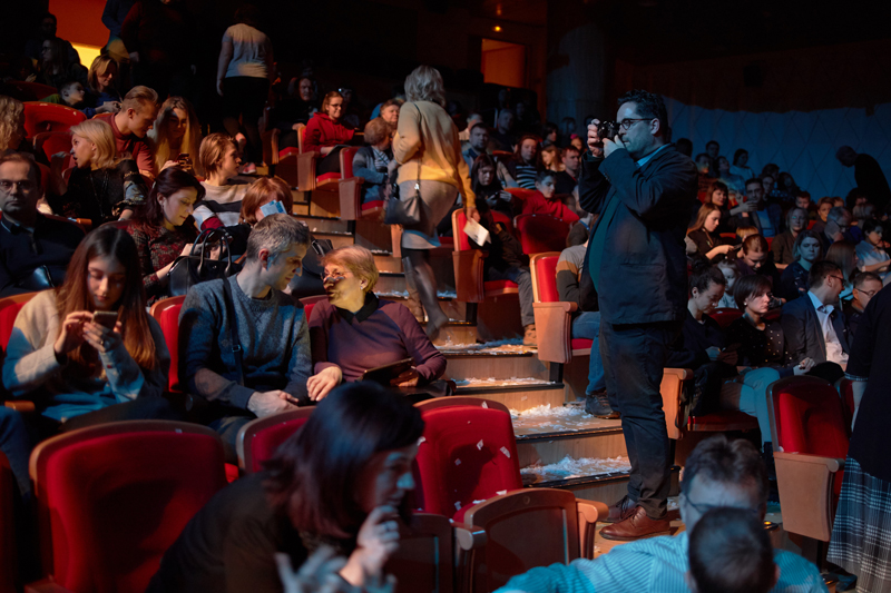 Следующая точка на карте — «Снежное шоу» Вячеслава Полунина. Ждем Славу за кулисами, но он занят, наблюдаем за гримом. Пора: идем в зал. Томас фотографирует публику и тихо исчезает, отправив мне сообщение: «Повеселитесь как следует».
