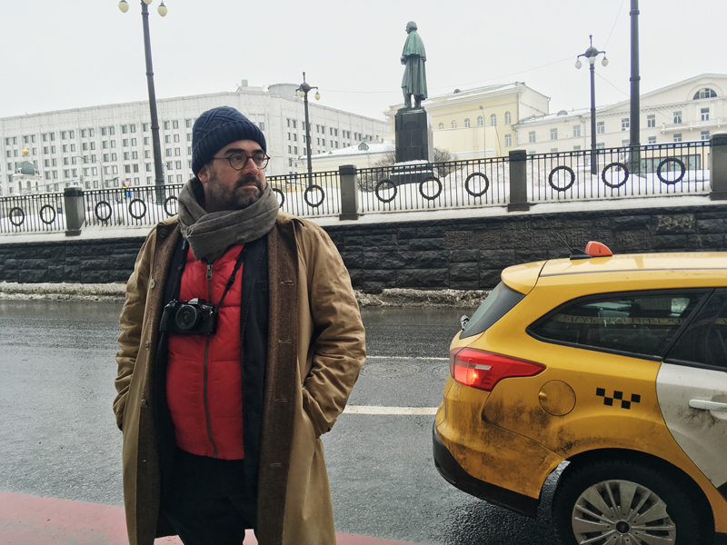 Мы продолжаем путь по бульварам, замираем в переулках, кружим вокруг памятников: сначала Гоголь, а потом и Маяковский — огромный, величественный. Где-то здесь фотограф вспоминает, как в юности жил в коммуналке на Патриарших: «Аренда комнаты тогда 80 долларов стоила, представляешь?»