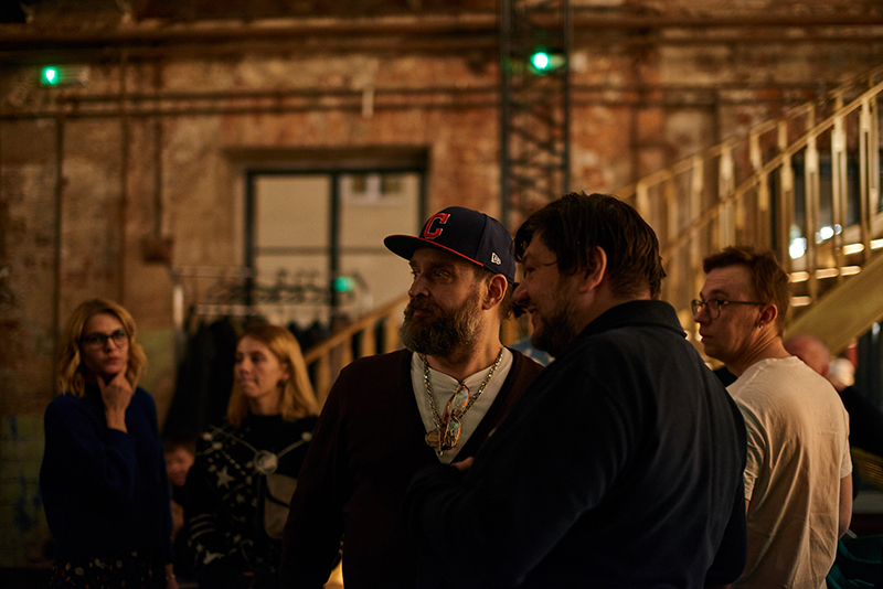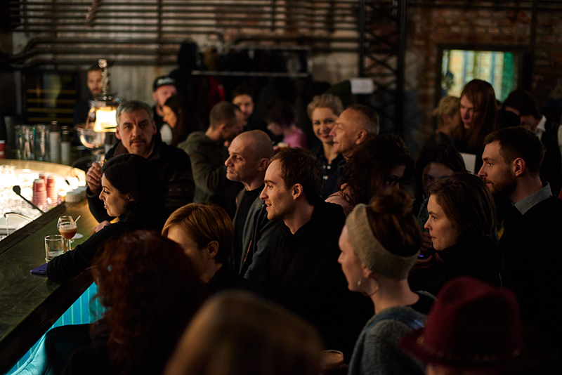 Несмотря на максимально неудобное время — воскресенье, 21.30 — на первой вечеринке в депо было довольно много гостей. Это участники и друзья проекта: куратор Нина Гомиашвили, фотографы Magnum Алекс Майоли, Томас Дворжак и Нюша Таваколян, художник Павел Пепперштейн, директор Музея Москвы Алина Сапрыкина, фотограф Игорь Мухин, журналист и литературный критик Анна Наринская, актер Владимир Мишуков, шеф-бармен Noor Bar Марат Саддаров, главный дизайнер Первого канала Евгений Райцес, пиар-директор «Гаража» Дарья Котова, участник арт-группы AES+F Евгений Святский, художник Катя Бочавар и еще человек 150.