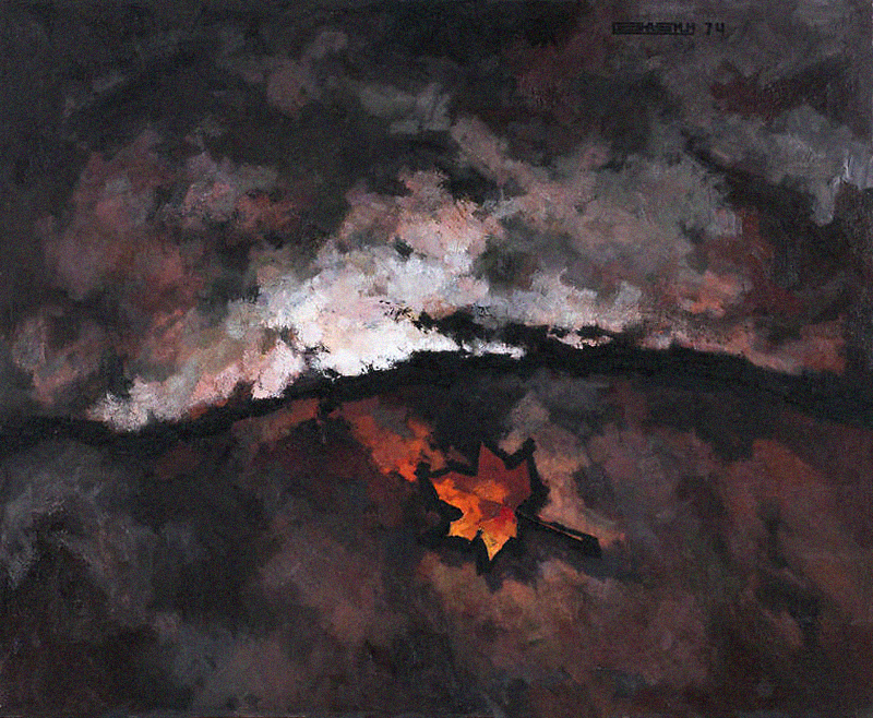 Оскар Рабин. Любимейший художник. Большой живописец, maestro. Помню, как отчаянно лет в 14, еще учась в художественной школе, пыталась подражать ему. Перед этой картиной с горящим в недрах глубокой осени ярким листом — стояла буквально на днях. Осень патриарха. Pax aeternum.