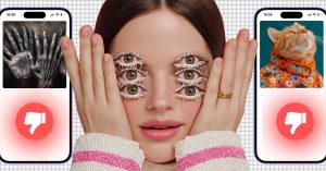 Так начался лавинообразный рост автоматически сгенерированного контента, иногда неотличимого от человеческого, но при этом лишенного глубины, оригинальности и достоверности. Исследования показывают, что контент, созданный нейросетями, теряет до 30% охвата, а вовлеченность (лайки, комментарии, репосты) падает на 55%. Показатель кликабельности (CTR) у таких постов на 60% ниже, чем у человеческих. Основная причина кроется в сложившейся за последний год чрезмерной зависимости от сгенерированных ИИ «хуков» — цепляющих фраз для привлечения внимания, что приводит к повторяющимся и шаблонным вступлениям, лишенным оригинальности и эмоционального заряда. Идеальные, но при этом немного странные лица, кривые пропорции, лишние пальцы или слипшиеся волосы — на первый взгляд мелочи, но мозг их считывает и сигналит: «Что-то не так». И это чувство накапливается, делает просмотр неприятным.