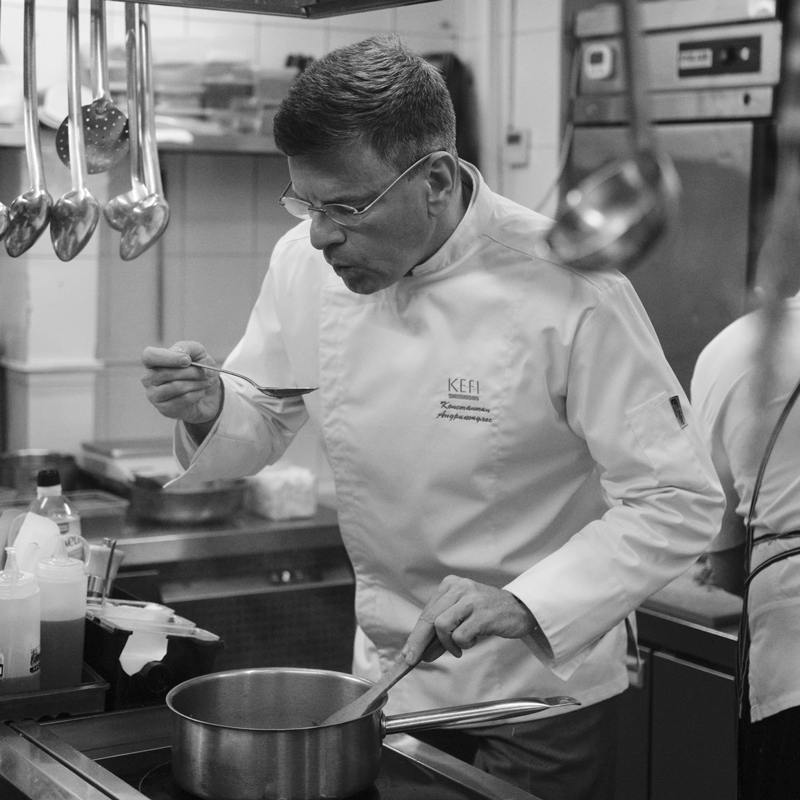 Пару лет назад по предложению Васи Церетели на месте «Дома 12» мы открыли ресторан Kefi. И я наконец-то гастрономически почувствовал себя в Москве как дома, в Греции. Толчком для этого проекта послужила невозможность быстро, без пересадок, добраться до родных Афин с их прекрасными ресторанами. Вот и пришлось тут завести собственную греческую кухню. В основе меню — рецепты моей мамы. Я просто прилетел в Грецию, сел с ней рядом и сказал: «Мама, пиши».