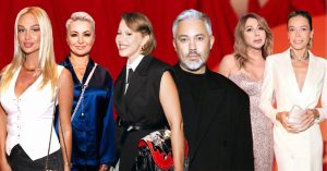 В первый ряд организатор действа Катя Минкевич рассадила дизайнера Алису Рубан и ресторатора Елену Пинскую, их дети — участники показа.