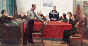 Иллюстрация: С. А. Григорьев. «Обсуждение двойки»/Государственная Третьяковская галерея