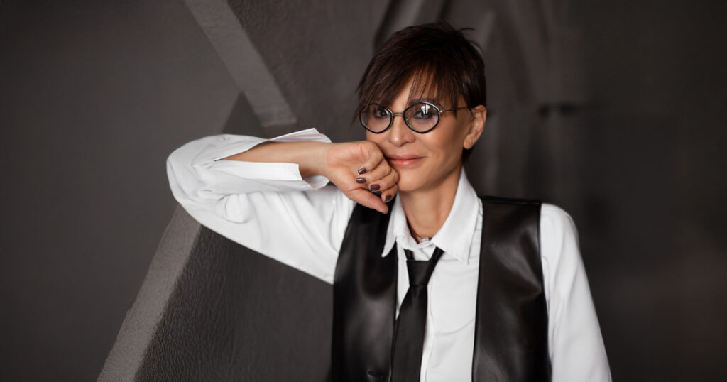 Я поняла: все мои вещи, юбки и платья, больше не работают. Нужно включить в имидж «мальчика», найти какой-то брючный костюм. И с этого началась моя игра в баланс между инь и ян — мужским и женским началом. Только из-за этой стрижки.