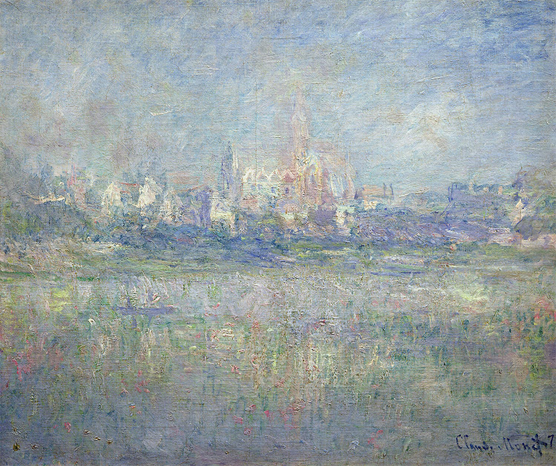 В январе 1882 года Моне вернулся в Ветей, чтобы заключить договор на аренду участка на кладбище, где покоилась Камилла. Он не возвращался в Ветей до 1901 года, когда летом обитателям Живерни пришлось покинуть их имение из-за начавшегося ремонта. Семейство поселилось в деревушке на берегу реки, на противоположном берегу которой раскинулся городок Ветей. Художник, разумеется, не удержался, чтобы написать серию картин с видами Сены и Ветея. Один из таких пейзажей обошелся Сергею Щукину в 11 тысяч франков.