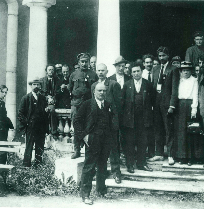 Делегаты II конгресса Коминтерна у Таврического дворца. Слева направо: И.Г. Чаплин, Л.М. Карахан, Н.И. Бухарин, М.М. Лашевич, М.А. Пешков, А.М. Горький, В.И. Ленин, С.С. Зорин, Г.Е. Зиновьев, М.И. Ульянова, Н. Бомбаччи, Е.П. Первухин, А.Х. Митрофанов, И.А. Терехов, А.Я. Беленький, Н.М. Анцелович. Петроград. 19 июля 1920 г.
