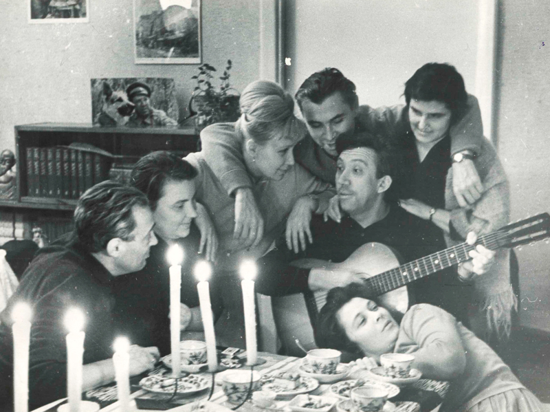 Илья Гутман с женой Зинаидой, певица Ирина Муштакова, Марат Вайнтрауб, Ольга Карахан, Юрий Никулин и его жена Татьяна Ростовцева. 1960-е годы в квартире дома в Нащокинском переулке