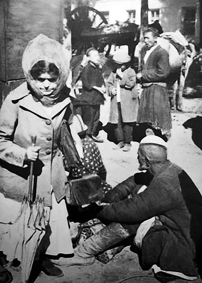 После национализации княжеский дворец действительно превратили в музей (сегодня это Дом приемов МИД Узбекистана). Таля запомнила и дворец, и сад вокруг, а еще, как орехи, падая с деревьев, стучали им с братом по головам. Надежда Александровна, недолго побыв смотрительницей музея, доживала тут же, в сторожке. Умерла она, по слухам, от укуса бешеной собаки, когда — неизвестно. Швейцарская путешественница Элла Мэйларт в своей книжке «Turkestan Solo» приводит фотографию вдовы 1932 года. И хотя подлинность снимка оспаривается, от описания не удержаться: «Ее волнистые волосы были покрыты косынкой, старческое лицо было в пудре. Княгиня передвигалась от прилавка к прилавку с недовольным видом и инквизиторским взглядом. Была одета в серый пиджак отменного качества и белое платье с подбором, она опиралась на зонт как на костыль, неся портфель под рукой».