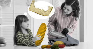 Но оставим котиков с их спорной анатомией. Перейдем к детям. Их, как водится, учат быть щедрыми, и вот на каком примере. Один мальчик пришел в школу, и был у него с собой вкусный-превкусный завтрак, вы не поверите — белый хлебушек. А у другого мальчика завтрака не было, он его потерял по дороге (тоже, видимо, целый батон без всего). Первый мальчик так и съел весь свой хлеб — не поделился и не подавился. И другу оставалось только грустно на него смотреть, но тут третий, хороший мальчик, отломил ему кусочек своего хлебушка.