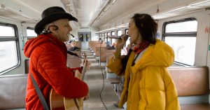 Мы переходим из вагона в вагон. И все повторяется заново. То же самое приветствие, та же старая песенка о любви. «Я иду за тобой, чтобы ты ни делала/ Ведь ты показала мне столько вещей, о которых я не имел понятия». Ира и Олег поют, глядя друг на друга и улыбаясь, как Крис Норман и Сюзи Кватро в старом видео. Пассажиры проходят мимо них к выходу, как мимо включенного телевизора на своей кухне.