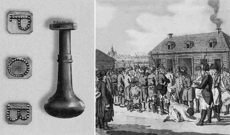 При Елизавете Петровне никого не казнили, и Ивана Осипова сына Каина было решено бить кнутом и, вырезав ноздри и поставив на лбу литеру В, а на щеках О и Р, сослать «в тяшкую работу» в эстляндский порт Рогервик. К слову, если верить историческому анекдоту, специальную машинку для клеймения изобрел сам генерал-полицмейстер. Сомневающихся Татищев успокоил: в случае судебной ошибки ее будет легко исправить. Достаточно на лбу невинно осужденного выжечь частицу «НЕ».