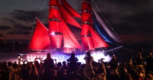Вообще праздник «Алые паруса» удивительным образом возник как городское развлечение по инициативе самих выпускников еще в 1968 году. Почему удивительным — вообще-то Грин трижды отменялся в советское время. Эти «Паруса» успел застать Василий Аксенов, о чем и написал. А в 1979 году их отменил глава ленинградского обкома КПСС Григорий Романов, потому что праздник иллюстрировал то, как не может выглядеть юнец, полноправно входящий в советское коммунистическое общество. В 2005 году традиция возобновилась — тогда город не страдал от обездвиженности, ведь ничего не перекрывалось, а набережные снова стали загажены: «Я помню, как в 2006 году шел с концерта “ДДТ” со стадиона “Петровский” через Дворцовую домой — тогда еще ничего не было перегорожено. Моего малолетнего брата, который, выпустившись из школы, решил сходить с нами на Шевчука, а не на быдло-пьянку, попытались начать лупить те, кто составлял там основной контингент — бухая быдлота», — вспоминает знакомый петербуржец.