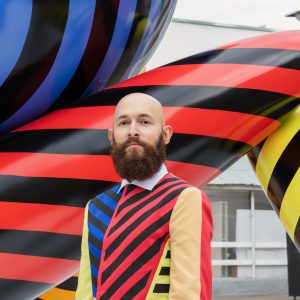 Работать с костюмами было привычно, ведь всегда можно оттолкнуться от человеческого тела, а при создании скульптуры в пространстве нет отправной точки, только пустота. Осознанный и намеренный шаг как скульптор я сделал в 2018 году для выставки «Цирк!Цирк!Цирк!» в галерее ART4.RU. Посмотрев на свои предыдущие работы, я понял, что их объединяет: симметрия и стабильность в композиции. Я много использовал угловатые геометрические фигуры, я очень люблю линии, треугольники, их колкость. Обо всем этом на некоторое время пришлось забыть, чтобы обогатить свой визуальный язык. Я взял за основу шар, эллипс, каплеобразные формы, стал их по-разному комбинировать, крутить, и получилась скульптура — «Жонглер». Она удивила и многим невероятно понравилась, так что для первой персональной выставки в галерее «ЗДЕСЬ на Таганке» я решил развить этот опыт и выставить только скульптуры. Надо сказать, что я внимательно слежу за тем, как развивается Москва в последнее время. После реконструкции пешеходных зон и тротуаров появилось много площадок, которые ждут, когда на них появится новая городская скульптура. Поэтому я придумал для этих пустых зон 29 скульптур, виртуально вписал их в городское пространство и сделал для выставки 8 моделей моих любимых из этой серии, которая называется «Танцующая ось пятого измерения».