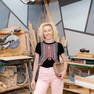 Чтобы восстановить нервную систему, еще работая в наружке, я пошла на столярные курсы. Сделала себе стул и полку. Что-то тогда екнуло. Шум станков и жужжание шлифовальной машинки заставили отключить многозадачность и концентрироваться на отдельных действиях здесь и сейчас — это чистая йога. Если ты не будешь собран, важность момента уходит, погонаж конечностей может сократиться, да и изделие не получится.